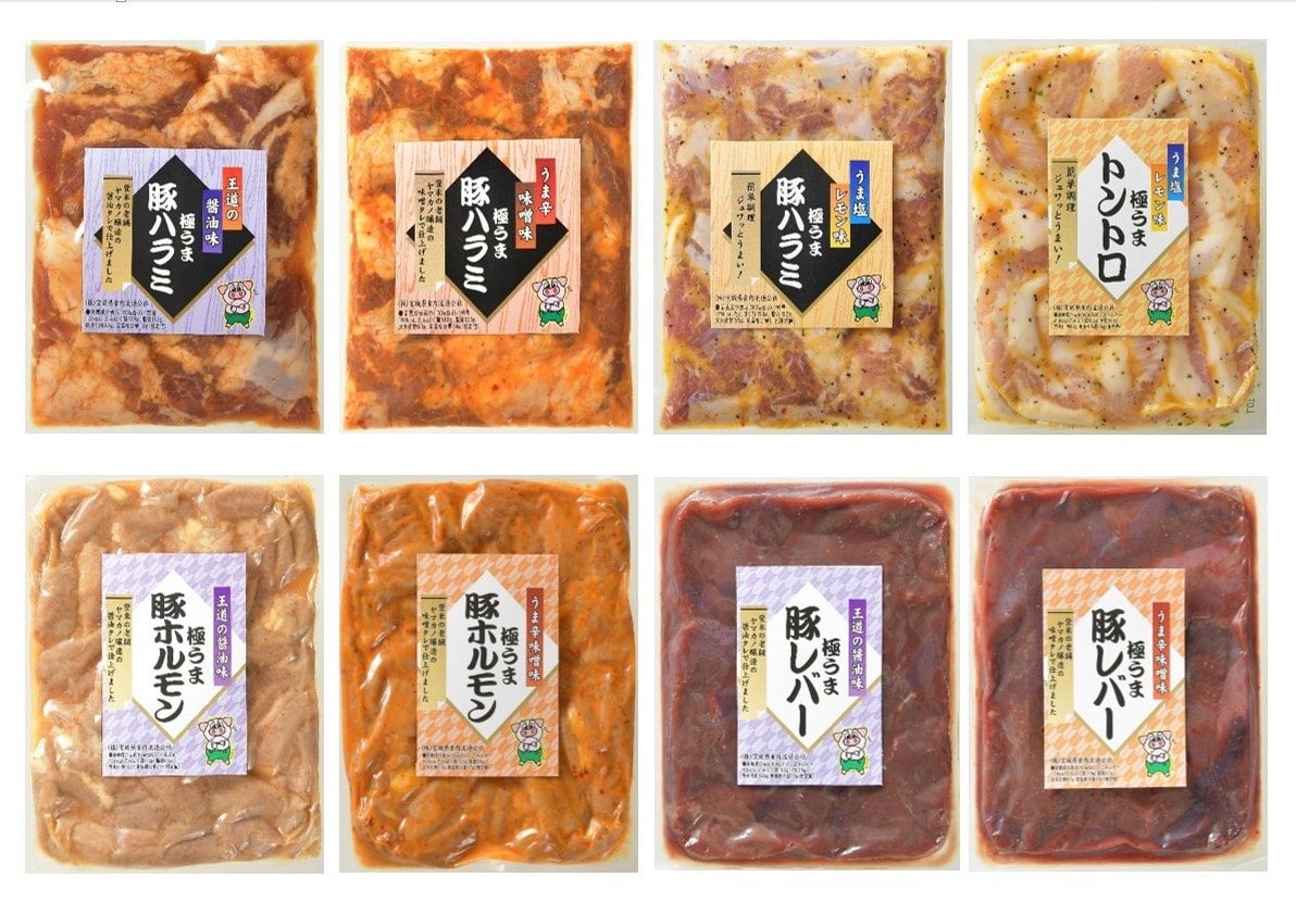 みちのく東北産の豚ハラミ・ホルモン・レバーを明治42年創業のヤマカノ醸造株式会社(宮城県登米市)オリジナルの味噌ダレと醤油ダレで味付けました。