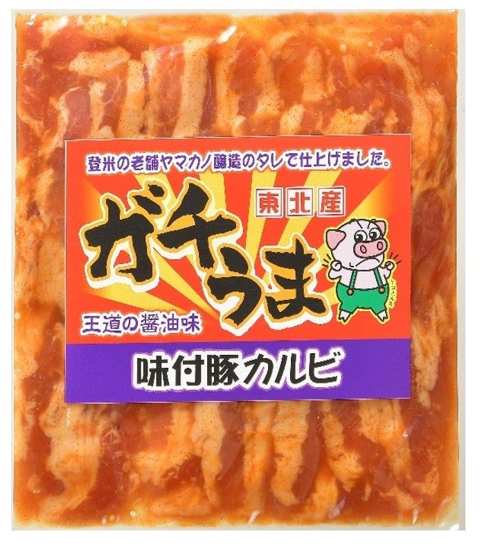 みちのく東北産の豚カルビを明治42年創業のヤマカノ醸造株式会社(宮城県登米市)のオリジナルのタレで味付けしました。 醤油ダレの芳醇な香りと深みのある味わいが特徴です。 食肉センターが自信をもっておすすめする味付き豚カルビをぜひご堪能ください。