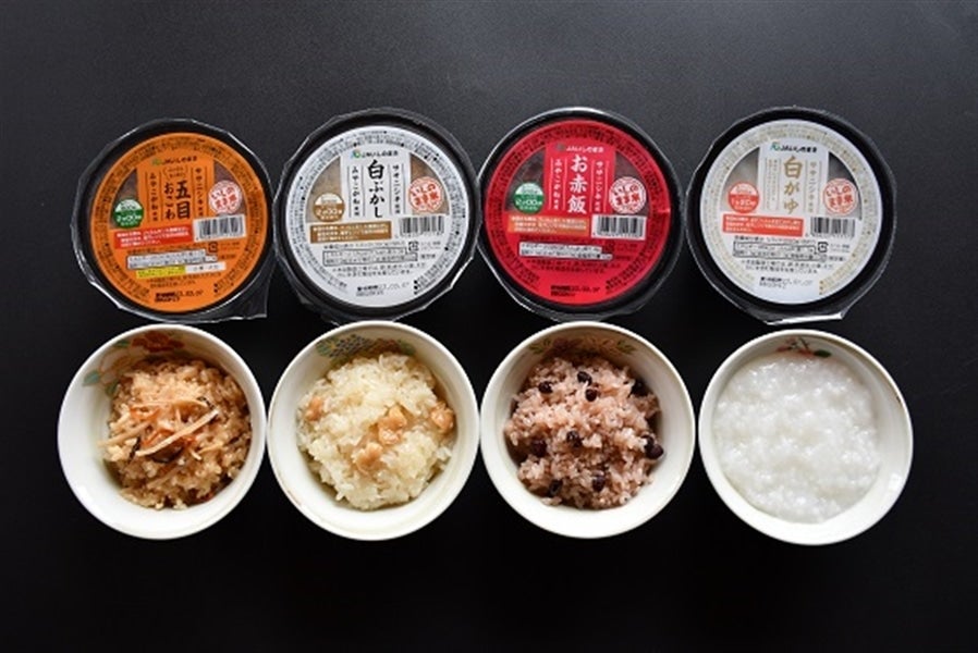 炊飯パックの詰合せ商品です。商品ラインナップは、五目おこわ、赤飯、白ぶかし、おかゆの4種。いずれも電子レンジで2分加熱するだけで調理でき大変便利です。