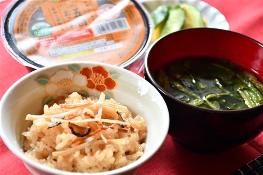 もち米(宮城県産)、精米(宮城県産)、ごぼう水煮、しいたけ水煮、たけのこ水煮、にんじん水煮、しょうゆ、発酵調味料、白だし/調味料(アミノ酸等)、酒精、(一部に小麦・大豆を含む)