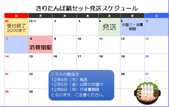 〇こちらの画面からの注文受付分は、12月4日木曜日に一斉発送致します。それ以外は発送できかねますので、あらかじめご了承ください。発送日ごとに異なる商品ページをご用意しております。詳しくは商品の「規格」を確認お願いします。