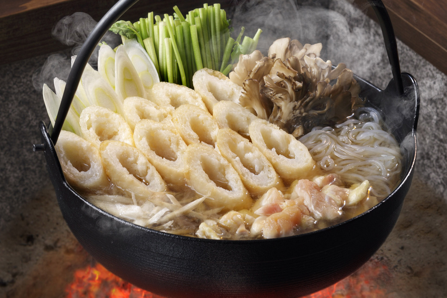 比内地鶏スープがこんがりきつね色の焼き目の付いたきりたんぽにしみ込み、 セリや舞茸、ごぼう、糸こんにゃくなどが絡み合ってたまらないおいしさ!ぜひ1度お試しください。