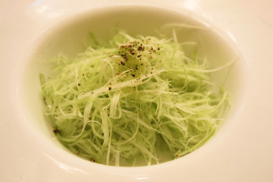 2.1をボウルに入れ、にんにく・ナンプラー、ごま油を加えてあえ、器に盛ってこしょう少々をふって出来上がり。