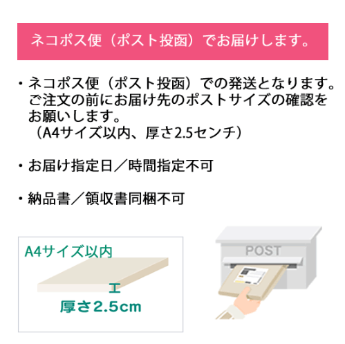 2〜7営業日での出荷予定 ポスト投函(ネコポス)になります。 熨斗対応不可。着日指定不可。