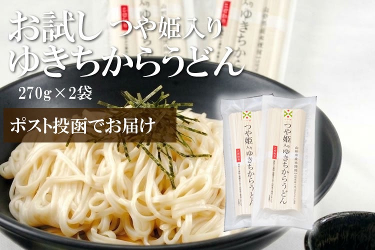 稀少な山形県産小麦「ゆきちから」と山形県が誇るブランド米「つや姫」の米粉を使用した新商品です。 夏はつるっと「ざるうどん」、冬は山形名物のあつあつ「ひっぱりうどん」に最適な麺に仕上げました。 贈答品にもお使いいただけます。