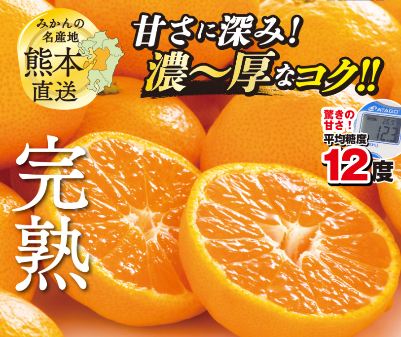 濃厚な甘みと酸味が絶妙 薄い皮が実にピタッと張り付いているのが特徴で、 果肉が弾けて口いっぱいに広がる甘い果汁がたまりません! 平均糖度は約12度もあり、一玉食べると次々と手が伸びるおいしさです! ◆みかんの皮目の色について◆ 生育の関係で、今年は色づきが遅く、 青みがかかっていますが、糖度ののった美味しいみかんです。 青みは時間が立てば黄色に変化していきます。 ※露地栽培の為、皮の表面に小傷があります。 ※みかんは傷みやすい果物のため、念のため数玉多めに入れております。 万が一大量の痛みなどがございましたら、到着後すぐにご連絡ください。 □■□お届け内容について□■□ 【商品名】完熟 濃蜜みかん 【内容量】約2kg/15〜25玉(L〜M/大小混合) 【保存方法/日持ち】涼しいところで3週間ほど