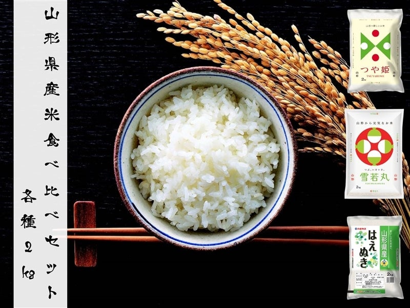 【農家応援】 山形県産米食べ比べセット 各種2s (つや姫・雪若丸・はえぬき) 令和2年産米でお米の食味ランキング「特A」を獲得した「つや姫・雪若丸・はえぬき」の食べ比べセットです。 米の食味ランキング 昭和46年産米から、全国規模の産地品種において毎年実施されている「お米の食味ランキング」。炊飯した白飯を試食して評価する「食味官能試験」に基づくランキングです。食味官能試験とは、専門の食味評価エキスパートパネル20名によって行われ、基準米(コシヒカリ)と試験対象米とを「外観・香り・味・粘り・硬さ・総合評価」の6項目について比較評価する相対法が使われます。なお、これはあくまでも食味の試験であり、お米そのものの評価ではありませんので、あらかじめご了承ください。 ご確認くださいこちらの商品は、【期間限定】のセットとなります。 販売期間:〜2021/10/24 ※在庫状況により、販売期間より早めに終了する場合がございます。あらかじめご了承ください。
