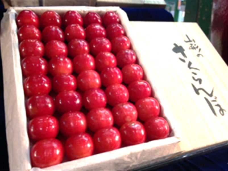 超促成栽培は天童市内の生産者が1987年から始めたものです。特製の鉢に植えた木を6月上旬から10月上旬まで冷蔵庫で保管した後に温室に移す「超早期加温ボックス栽培」という方法で、毎年年始に「日本一早いさくらんぼ」として出荷しています。