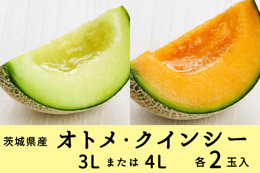 ◎茨城県産オトメメロン・クインシーセット 3Lまたは4L×各2玉入(秀・優)【4月17日頃より順次発送】