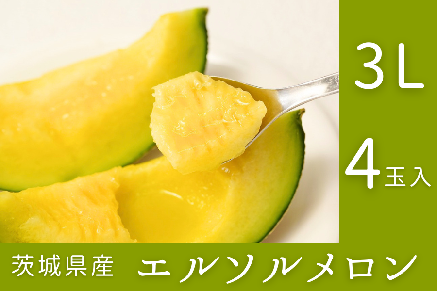 ◎茨城県産エルソルメロン 3L×4玉入(秀・優)【5月下旬頃より順次発送】