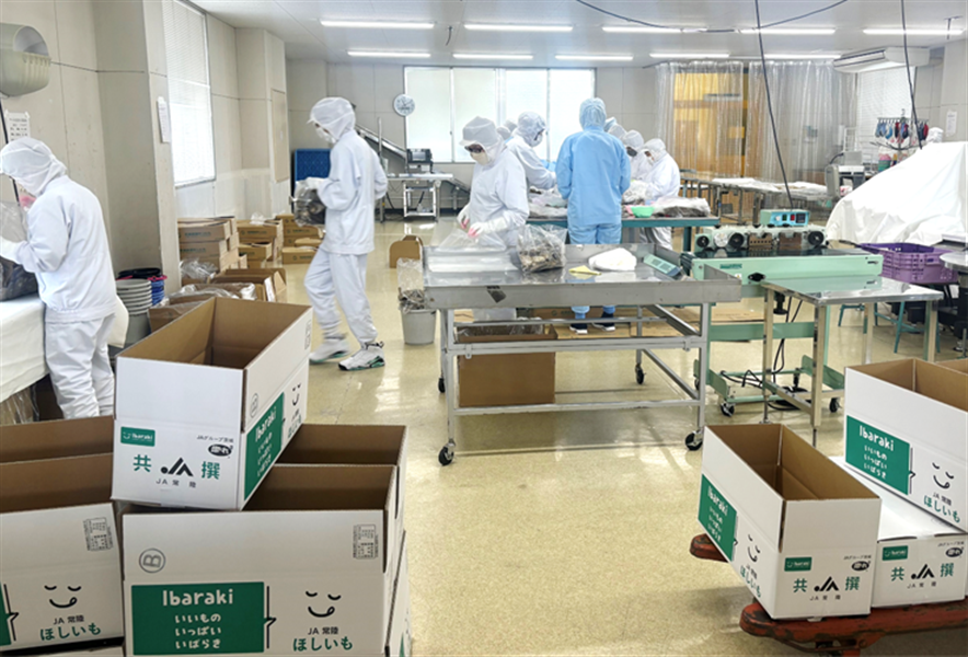 JA常陸の「干しいもパックセンター」で 商品の検品やパッケージ作業が行われています。