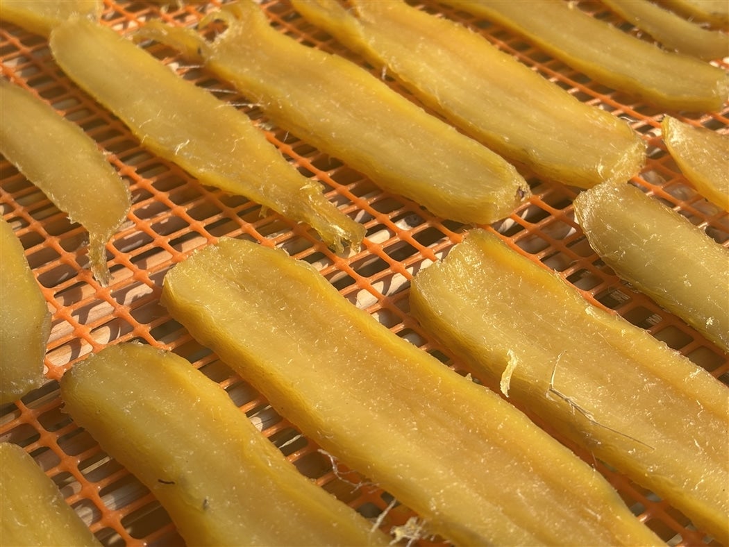 干し芋の表面に白い粉がつくことがありますが、 糖分が変化したもので、製品の異常ではございません。