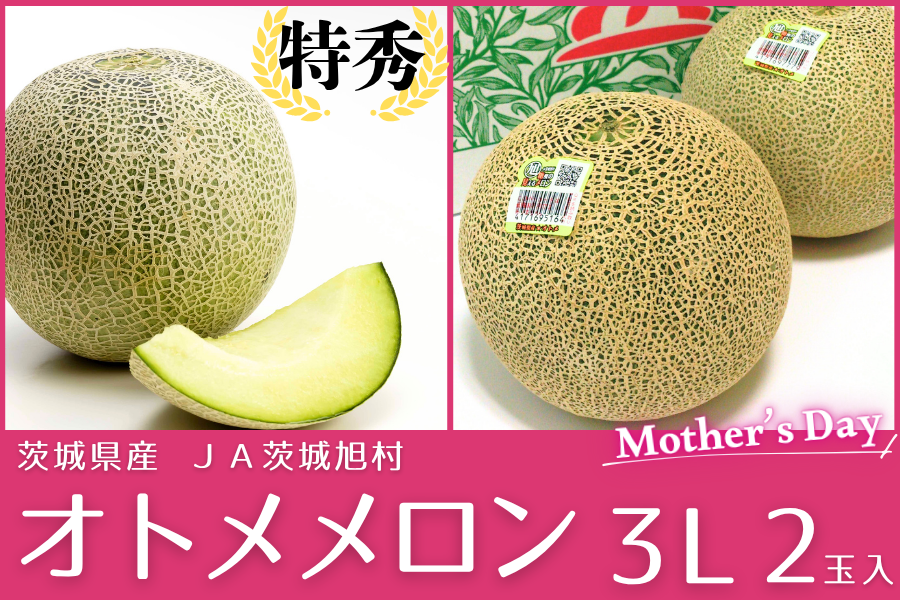 【母の日】茨城県産オトメメロン・特秀3L×2玉セット(JA茨城旭村)※5/8(金)出荷予定