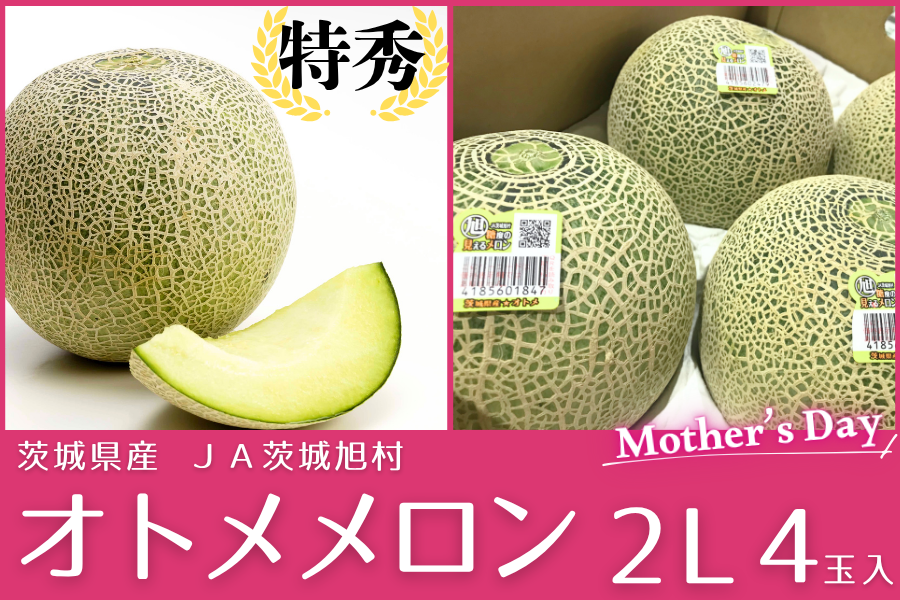 【母の日】茨城県産オトメメロン・特秀2L×4玉セット(JA茨城旭村)※5/8(金)出荷予定