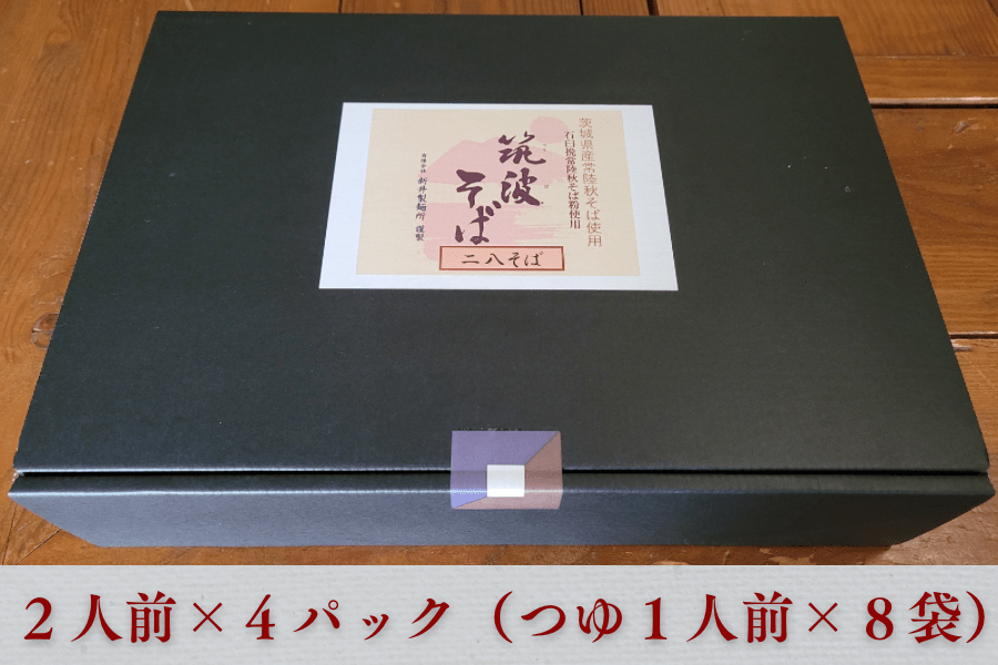 【お歳暮】 石臼挽常陸秋そば粉使用『二・八そば 筑波そば』 つゆ付(2人前×4パック)