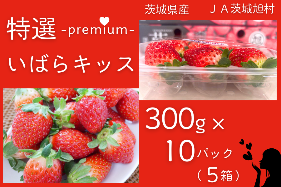 ◎茨城県産 特選いばらキッス(約300g×10パック) L〜3L JA茨城旭村【いちごを優しく包む「ゆりかーご」使用】