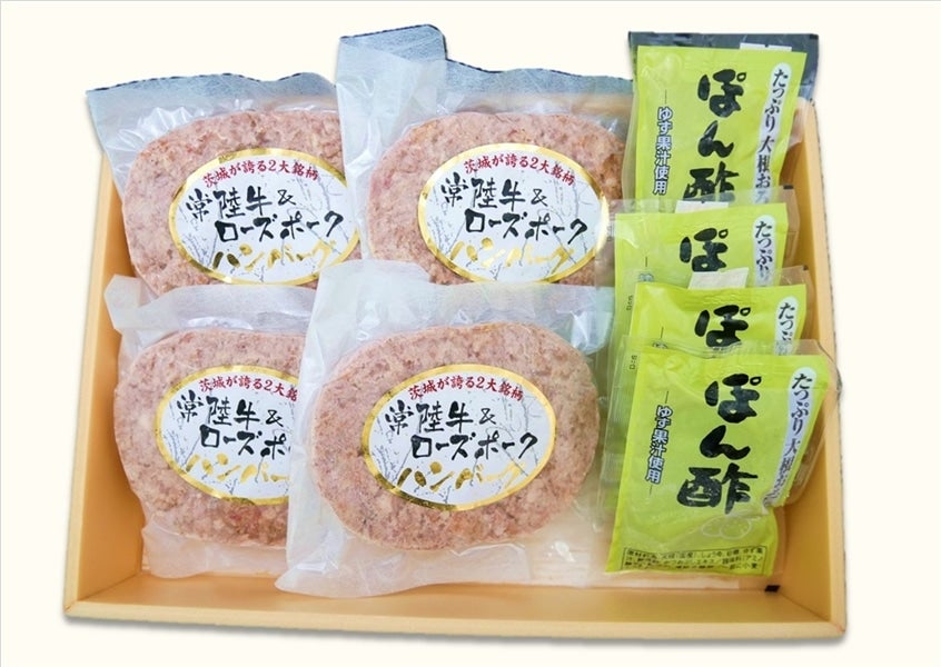 いばらきの2大銘柄『常陸牛』と『ローズポーク』をハンバーグで楽しめるちょっと高級な逸品です!
