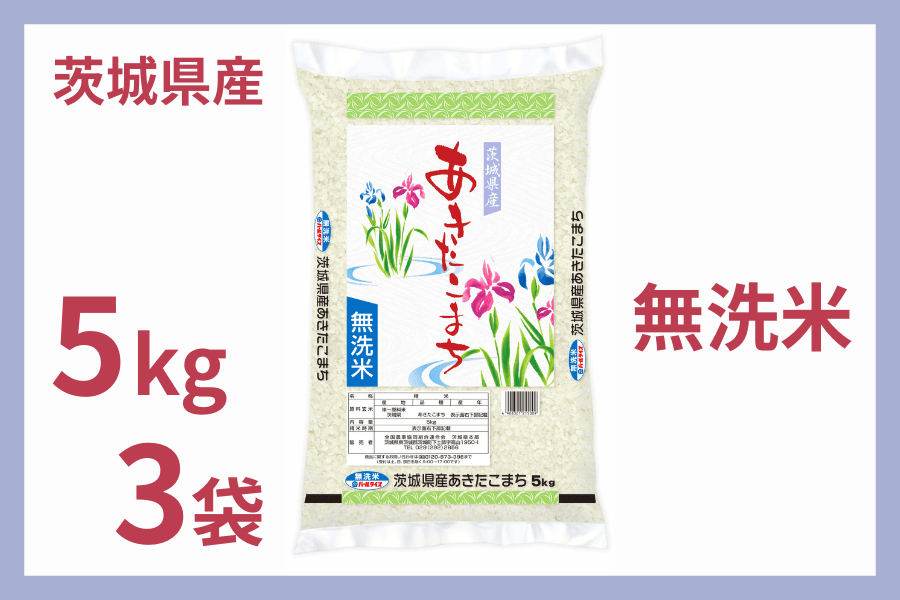 【母の日】 茨城県産『あきたこまち』 無洗米 5kg×3袋 令和7年産(ご注文順に順次発送)