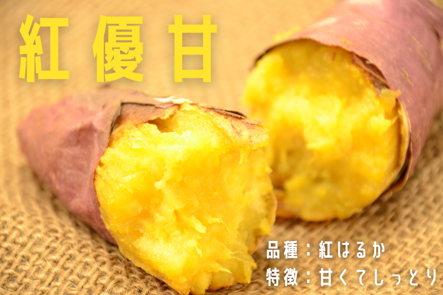 品種は「紅はるか」。 JAなめがたしおさいの『紅優甘』は その甘さが最大の特徴で、焼き芋にすると スイーツのような甘さが楽しめます。 しっとりとして舌触りがなめらかなので お菓子作りにも最適の品種。 茨城県内では『紅優甘』のファンが多く、 さつまいも好きを唸らせる美味しさです。
