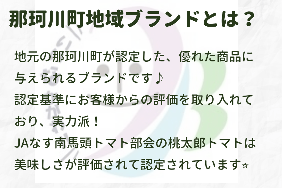 こだわって生産しているJAなす南馬頭トマト部会の桃太郎トマトは、産地である那珂川町の地域ブランドにも認定されています。
