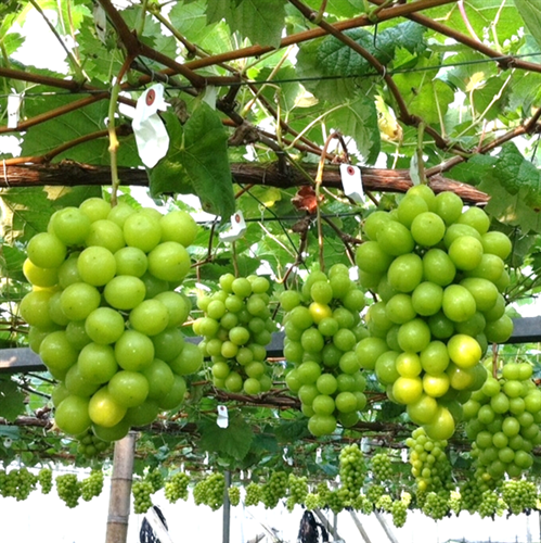 ・果皮は黄緑色で、粒が大きいの特徴です。酸味が少なく、比較的糖度が高く育つ品種です!