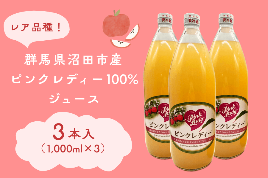 ピンクレディージュース 3本(りんごジュース)【ギフト260420】