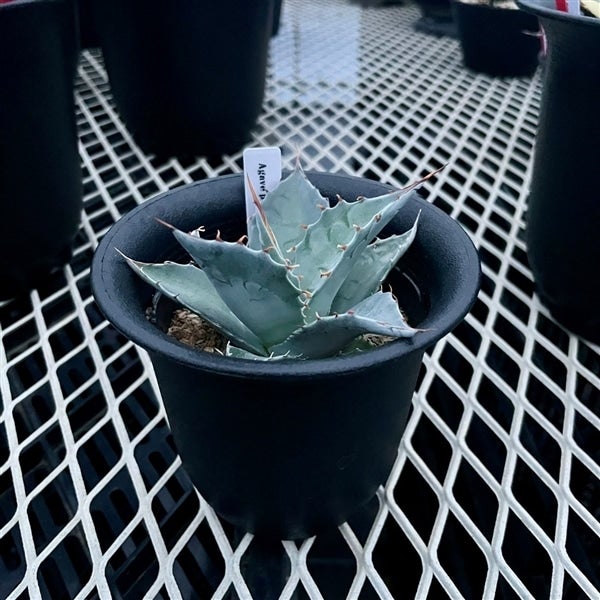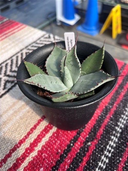 アカベの人気は、ワイルドでおしゃれな見た目に加え、暑さ、寒さに強く育てやすい丈夫さが魅力です。またこちらの品種パラマサは、丸みを帯びた灰青色の葉が美しいロゼットを作ります。葉先のトゲがアクセントとなり、小型ながら迫力ある存在感を放ちます。