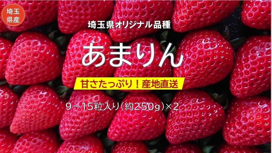 埼玉県農業技術研究センターで育成された埼玉県オリジナル品種「あまりん」。 埼玉県内の生産者だけが生産している品種です。 糖度が高く、食味の良い品種で、酸度が控えめのため甘みが感じやすく、食べやすいいちごです。果実の色つやが良く、赤色が映える見た目の良さも特徴です。新鮮な「あまりん」を生産者より直送します。 この機会に是非、一度ご賞味ください!!