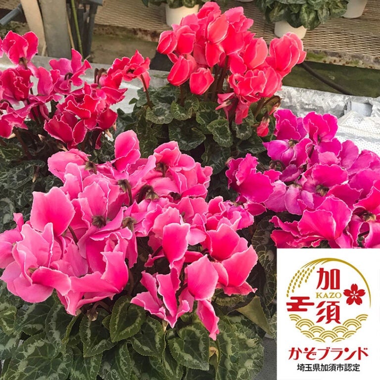 埼玉県加須市で栽培しているシクラメンは生産者が約50年前から、種・用土を1つ1つ慎重かつ丁寧に1年余りの年月をかけて自分で作り、皆様のお手元に可憐な花をお届けできるように作っています。