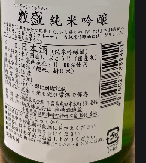 粒盛純米吟醸 720ml×1本