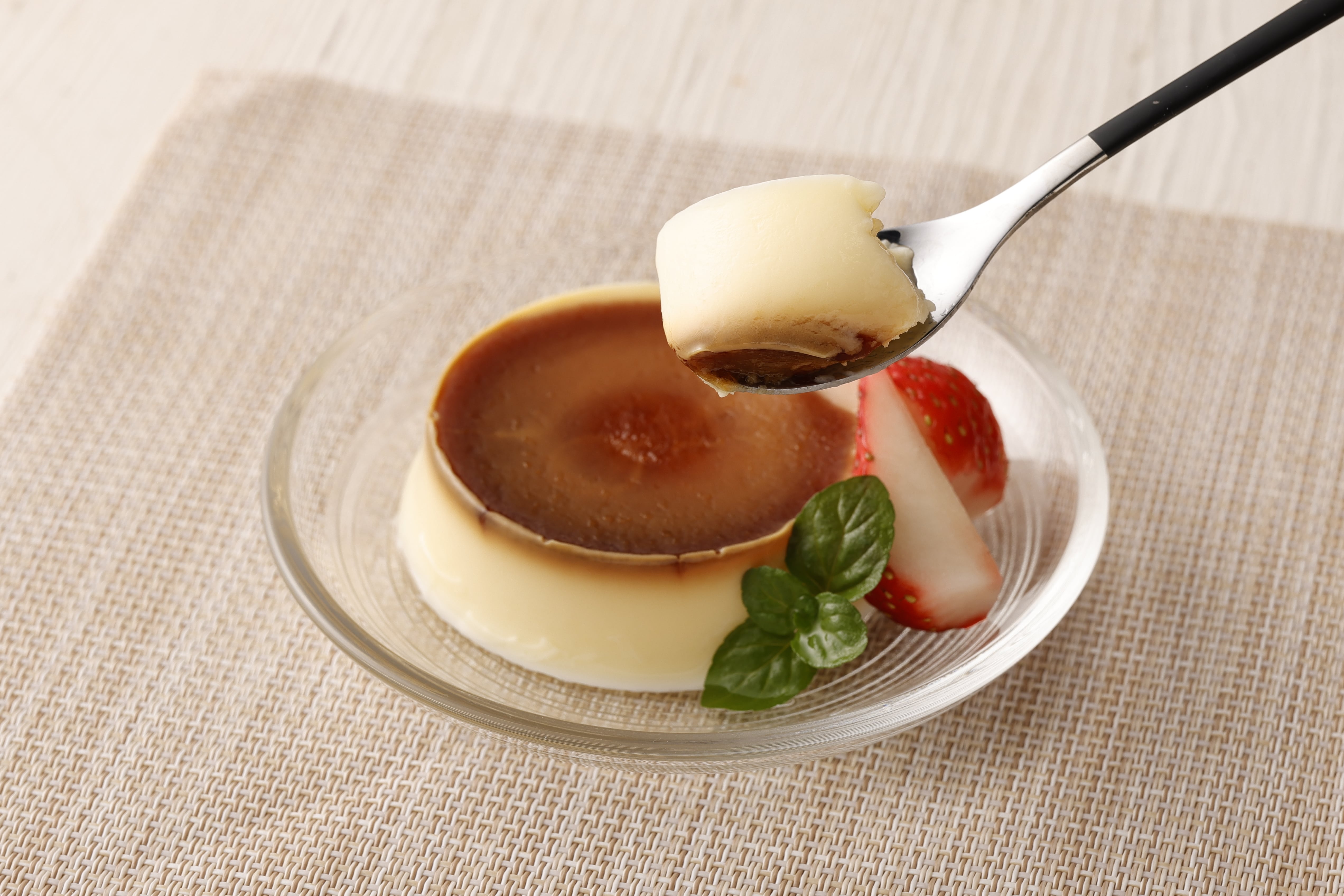 国産生乳を使用した卵不使用のトロっと食感のプリンです。くわいいくまモンデザイン。