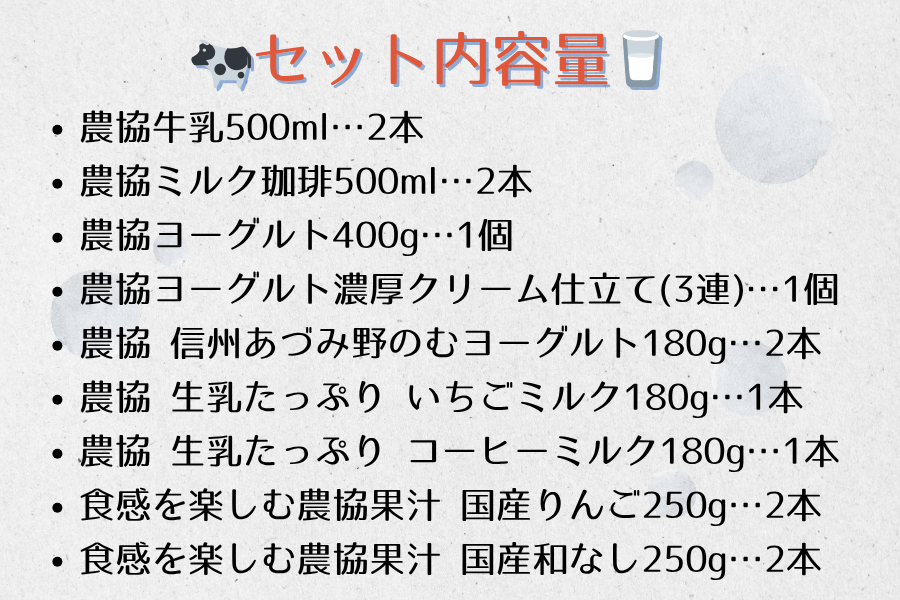 農協シリーズの牛乳・乳製品を詰め込んだセット。送料負担0でお届けします。