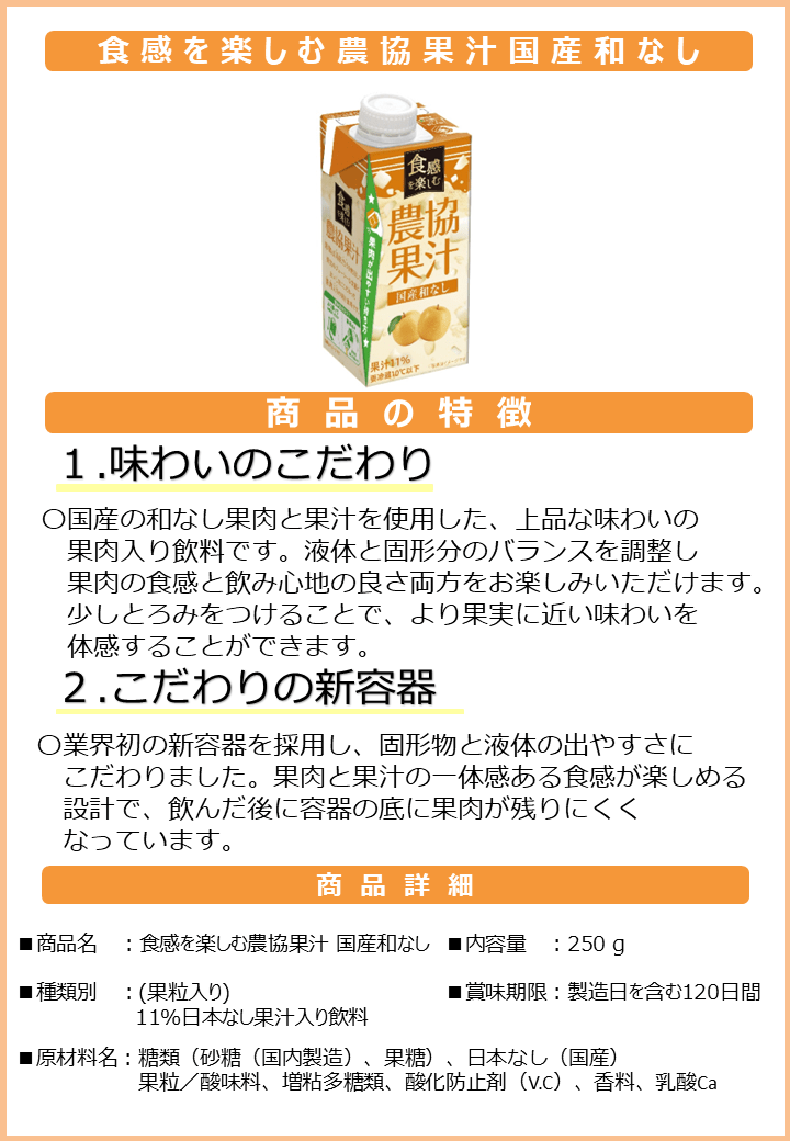 農協シリーズは、「農協・生産者のつながり」と「素材」や「製造」にこだわりを持って商品化し、生産者の想いや素材の価値を消費者に伝えることをコンセプトにしたJA全農のブランドの一つです。 2024年春には、新たに国産果汁のみを100%使用した「農協果汁」が農協シリーズに仲間入りし、「和歌山県産みかん」「くだものミックス」の2つのフレーバーを新発売。 農協ヨーグルトシリーズからは、信州産生乳50%と自家製生クリームを合わせた濃厚クリーム仕立ての新商品を発売。また、こだわりの生乳を使用した「農協ミルク珈琲」も新登場しました。