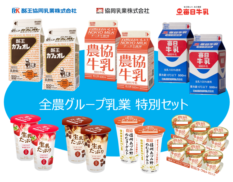 農協シリーズの牛乳・乳製品を詰め込んだセット。数量限定で送料負担0でお届けします。