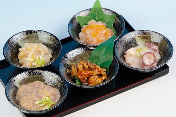 国産原料と独自の製法、味付にこだわり、一品一品職人仕込みで丁寧に造り上げた珍味五種のセット。