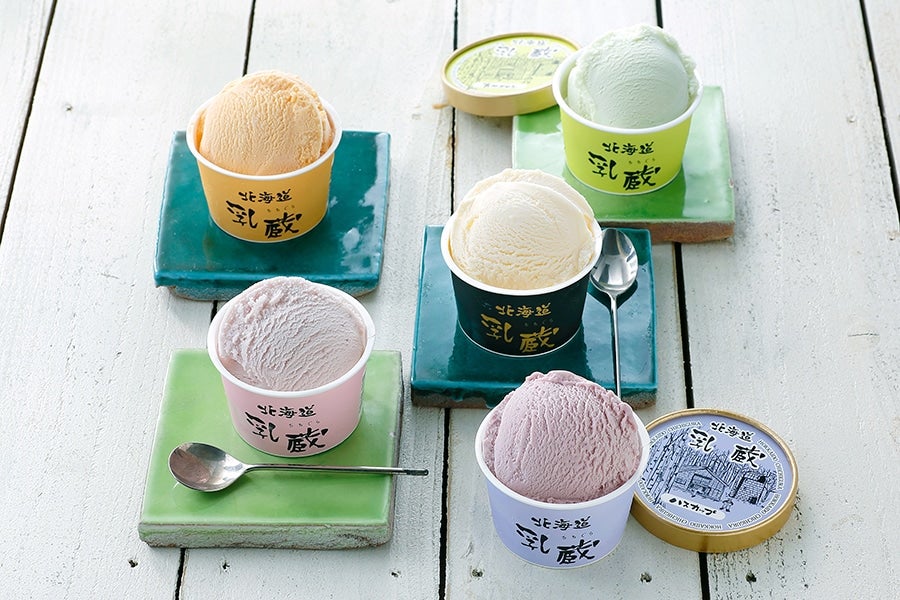 北海道産の牛乳で濃厚な味わいに仕上げた『乳蔵 アイスクリーム』。5種類の味わいを楽しめます。