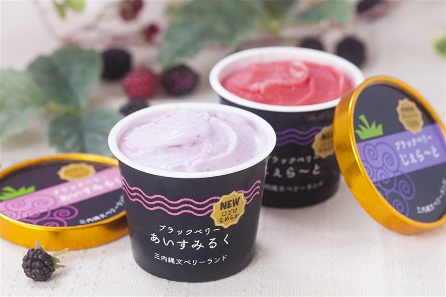 青森県青森市にある「三内縄文ベリーランド」で栽培されたブラックベリーとボイズンベリーを贅沢に使用したアイスクリームです。