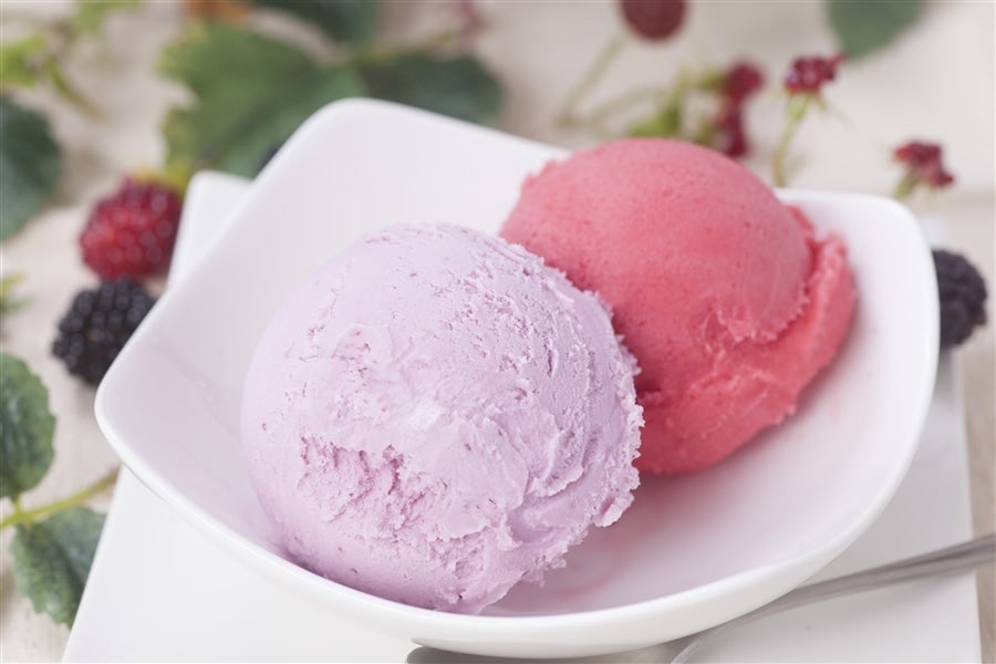 無農薬、化学肥料不使用で栽培されたボイズンベリーの果実から作られたジェラート。