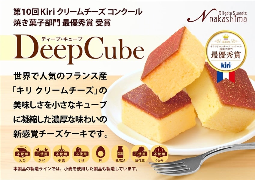 第10回キリクリームチーズコンクール焼き菓子部門にて最優秀賞に輝いたチーズケーキ。 キリクリームチーズとはフランスの牧場のミルクで作った人気のクリームチーズ。 そんなキリクリームチーズを小さなキューブの中に凝縮したスイーツです。 ○スイーツ・ナカシマとは○ 地域の素材に真心込めて、おいしいお菓子をつくり続けて90余年。 「スイーツ・ナカシマ」は、新潟で親しまれている洋菓子店です。 素材選びと丁寧な製法にこだわったスイーツは、幅広い世代に人気。特にチーズケーキセットは、ふんわり食感とクリーミーな味わいが特徴で、一口ごとに幸せな気分に。 大切な人への贈り物や自分へのご褒美にいかがでしょうか?