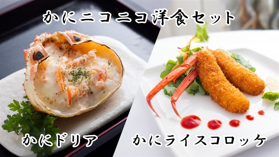 カニをたっぷり使った「かにライスコロッケ」とカニ屋ならではのオリジナル「かにドリア」をセットにしました。