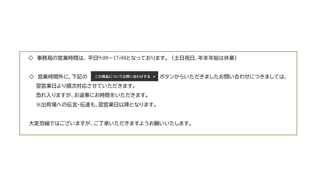 ※出荷場への伝言・伝達も、翌営業日以降となります。
