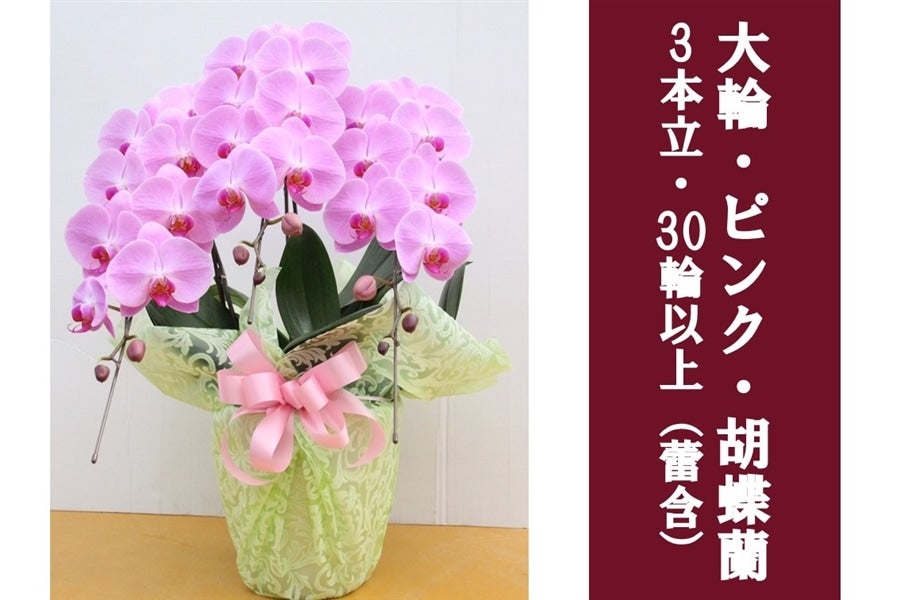 大輪・ピンク・胡蝶蘭_3本立30輪以上(蕾含む)