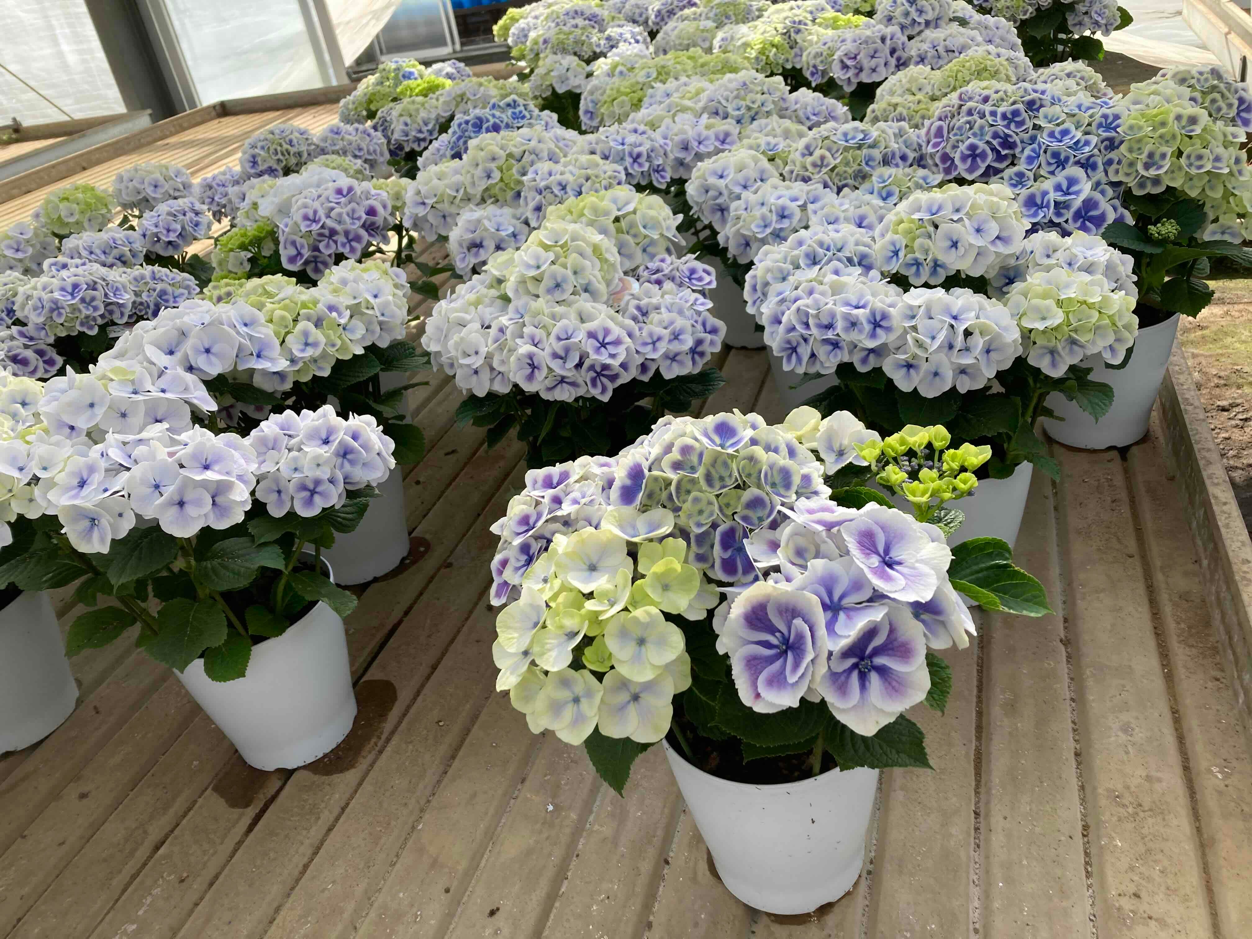 当農園のアジサイは豪華大輪咲の大株で出荷しています。5号鉢サイズでお花もたくさん付いて8本以上。特別な日の贈り物だからお花屋さんには並ばない豪華なアジサイをお届けいたします!