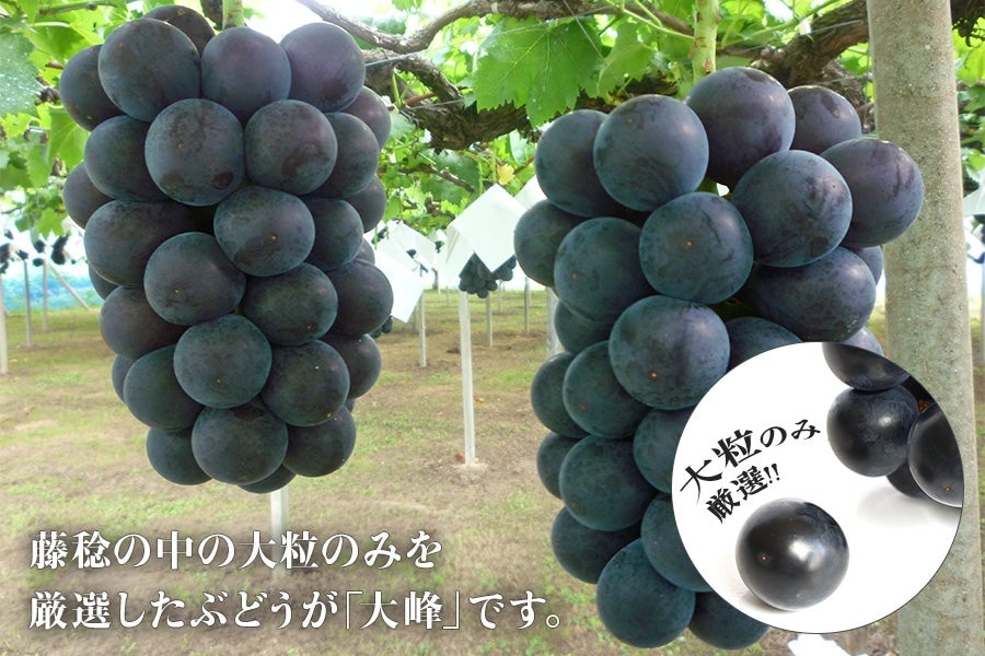 TAIHO(大峰)は、山梨県笛吹市御坂町産の黒ぶどう品種の藤稔の中で、特に粒が大きいぶどうです。