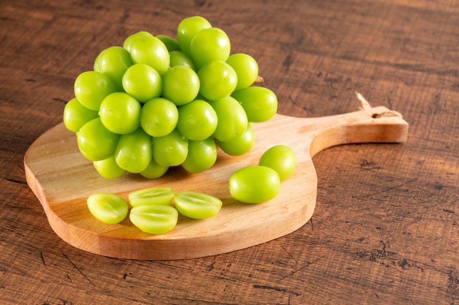 酸味が少なく、種無し、皮ごと食べられる特徴です。お子様からご年配の方まで安心してお召し上がりいただけます。