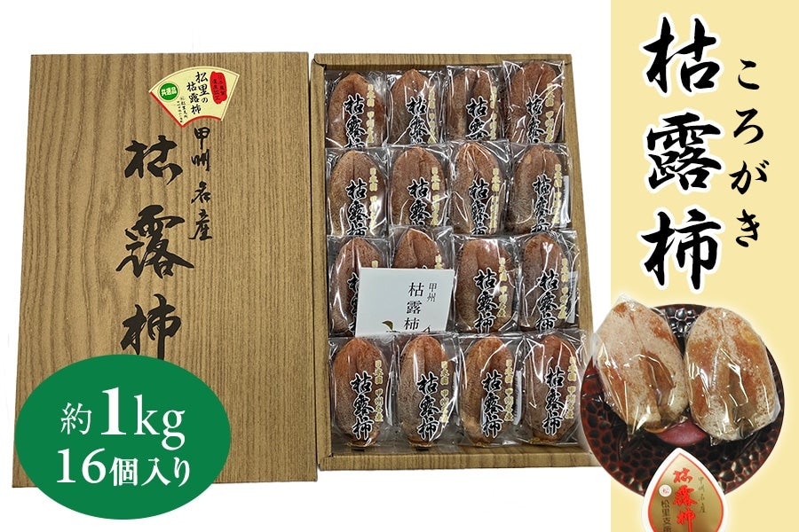 山梨県産 枯露柿(ころがき) 内容量:約1s 16個入り ※玉数指定はできません。そのほか、9個入り、15個入りの商品もございます。 賞味期限:商品到着日から約1か月 ※詳しい日付は商品パッケージに記載の賞味期限をご確認ください。