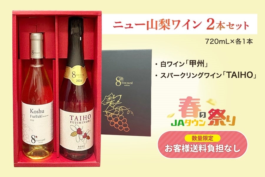 【春のJAタウン祭り】【ニュー山梨ワイン】白ワイン「甲州」&スパークリングワイン「TAIHO」720mL×各1本セット