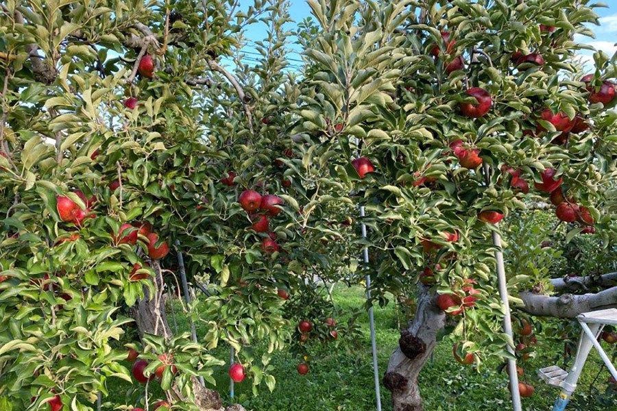 りんご畑は山間部から平野部まで管内の全域にわたっており、全国的に人気のある「ふじ」や「つがる」が主流ですが、長野県オリジナル品種の「秋映」「シナノゴールド」「シナノスイート」も多く栽培されています。