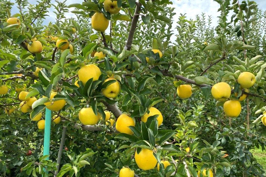 「ゴールデンデリシャス」と「千秋」の交配品種でその名のとおり黄色の外観が印象的なりんごです。