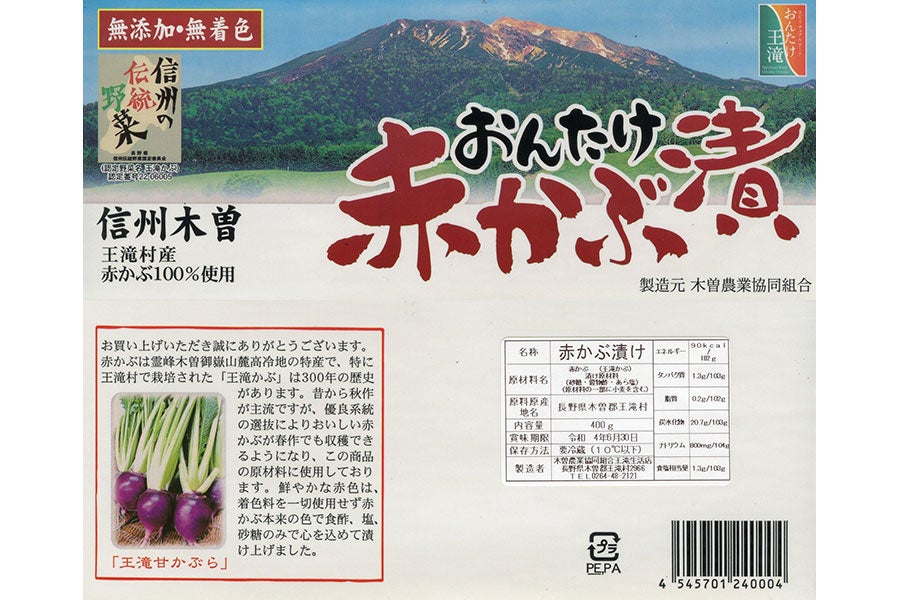 王滝村特産の『赤かぶ漬』。食品添加物を一切使わない、昔ながらの味をこの機会にぜひご賞味ください。